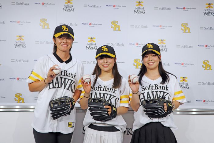 大東建託株式会社所属の女子プロゴルファー、渡邉彩香、佐久間朱莉、後藤未有の3人が15日、プロ野球のソフトバンク対ロッテ戦(福岡・みずほPayPayドーム)のセレモニアルピッチに登場した。