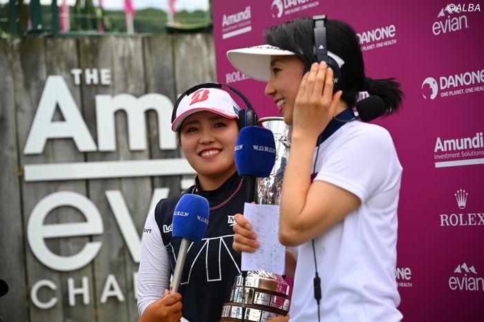 <アムンディ・エビアン選手権 最終日◇14日◇エビアンリゾートGC(フランス)◇6523ヤード・パー71>空から舞い降りた日本の国旗、会場を包んだ日本の国家『君が代』。古江彩佳のメジャー初制覇は、日の丸が輝く感動のフィナーレとなった。大会を中継するWOWOWのラウンド解説を務めた東尾理子さんは、その歴史的瞬間をグリーンそばで見た。