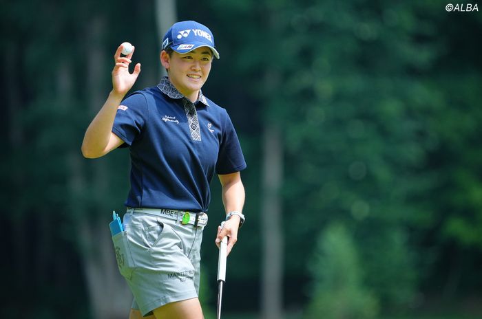 <北海道meijiカップ 初日◇2日◇札幌国際カントリークラブ 島松コース(北海道)◇6568ヤード・パー72>終盤の2つのボギーに悔いを残すも、今季2勝の岩井明愛が好発進を決めた。7バーディ・2ボギーの「67」をマークし、首位と1打差の2位。「難しいコースなのでこの位置で終えられてよかったです」と満足感を口にした。