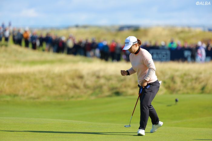 午前中は風は吹いているものの初日に比べれば落ち着いたコンディション。そのなかインコースからスタートした西郷は、11番でボギーとするが、14番、16番、17番で3つのバーディを奪う。一時は首位のネリー・コルダ(米国)に並ぶ勢いを見せた。左から来る横風に、グリーン上で時折、アドレスを解く瞬間もあったが、バーディパット、距離の残るパーパットを沈めるたびにガッツポーズ。気迫のプレーを見せていた。「前半は(難関の)17番でバーディを取れたり、インコースの作りと、風向きにいいイメージを持っていなかった中、アンダーで回れていたのでよかった」。しかし、後半に入ると徐々に風も強くなりコンディションが難化していく。2番のバーディを最後に、以降は3つのボギーを叩く結果に。「ショートパットが入らなかった」とこの失速を悔やむ。ただ「ボールが動くくらいの風なので、自分が打ちたいタイミングで打てなかった。やるべきことはやったので仕方ない」と表情は決して暗くはない。先週の「ISPS HANDA スコティッシュ女子オープン」は57位と苦戦したものの、“強風リンクス”は予習済み。「先週の練習場で、この風の感じだったらこういう打ち方が使えるんじゃないかとか色々やって、今週もそれがうまく生かせていると思うので、いい傾向にある」。米国ツアー参戦1年目は多くの学びを吸収しながら、大舞台で善戦を続けている。(文・齊藤啓介)