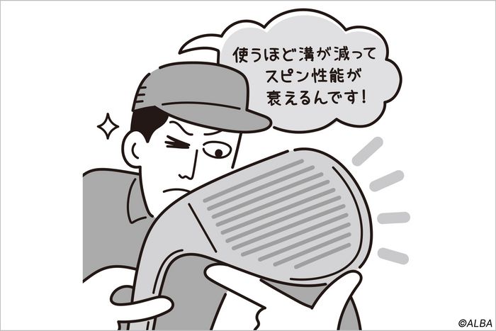 スピンのかかり具合に大きく影響する“溝(スコアライン)”。使い勝手がいいウェッジでも、溝が減っていたら即チェンジしよう。