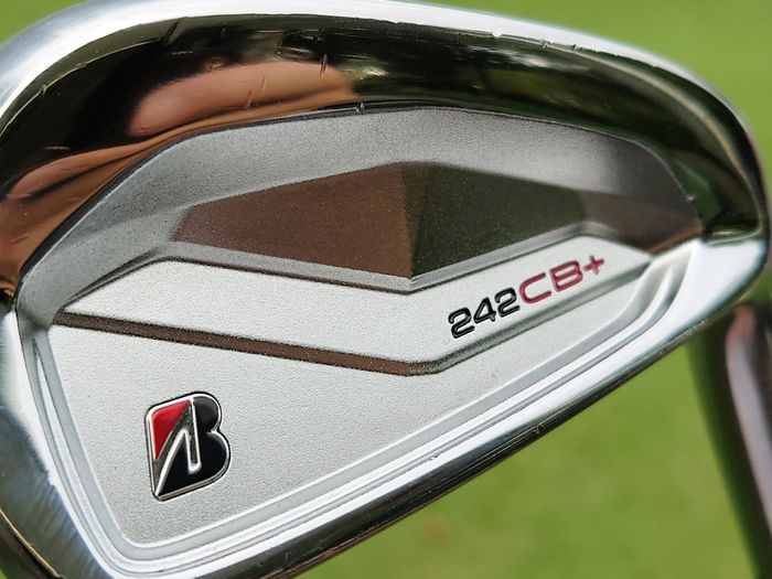ブリヂストンスポーツの『242CB+』は、2024年9月6日に発売。“やさしさと飛びをプラス。軟鉄鍛造のスタンダードアイアン。”というコピーです。もう一つ、新しいBシリーズのアイアン(『241CB』が同時発売)と込みで、“快芯の鍛造”というコピーもあります。『242CB+』は、バリバリのツアーモデルの『241CB』と組み合わせて使うコンボセットにしたときに違和感が出ないよう、ヘッドの大きさもセミラージの最小限に抑えて、フェースもツアーユースに耐え得るように仕上げました。その結果、本格派のゴルファーも満足させつつ、安心感もある新しいツアーアイアンになったのが『242CB+』の特徴です。凄いのは、「インナーポケット構造」です。ヘッドの下部は中空にして、フェースの下部に穴が空いた状態でヘッドを作ります。穴の中央には「リブ」が設置されています。その穴を塞いでフェースの加工をしているそうです。約20グラムの余剰重量が生まれたので、最適な重心になるように番手ごとに設計しています。この構造で『242CB+』は、ミスヒットをカバーする圧倒的な機能を持つと期待させます。4番と5番は、ソールに穴を開けてタングステンウェイトを入れて蓋をしています。低重心化することで、ボールの高さを上げています。そして、バックフェースの膨らみに注目です。打点の後ろ側にボリュームを出すのは、ツアーモデルのトレンドになりつつあります。打感を良くするのが狙いです。「ツアーコンタクトソール」という新しいソールになりました。『242CB+』は、「ラウンドタイプ」のソールになっていて、平らではなく丸みを帯びています。ソールを滑らして打つゴルファーには最適なソールですが、計算されているので、打ち込んでも抜けが良さそうです。面白いのはロフト角で、7番で31度です。クラシックなロフトのアイアンより3度立っているのは、ほぼ1番手(通常は4度違う)の飛距離のアドバンテージがあると言えるのです。4度立てて、7番アイアンを30度にするのが一般的になりつつある今、どうして31度なのか? こだわりがありそうで楽しみになります。『242CB+』は、ツアーアインにやさしさと飛びをプラスしたアイアンです。本当にそんなに上手く行くのでしょうか? 試打が楽しみになりました。試打した日は、薄曇りで、気温は24℃〜29℃。やや風あり、でした。ボールは、使い慣れていて、クラブの影響に集中できるので『TOUR B X』を使用しました。