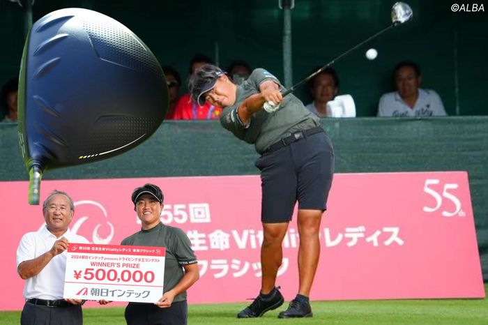 国内女子ツアーの「住友生命Vitalityレディス 東海クラシック」の2日目の競技終了後、大会恒例のLPGA公認「朝日インテックプレゼンツドライビング女王コンテスト」が行われ、“連覇”を狙った竹田麗央の275.6ヤードを2.1ヤード超える277.7ヤードを飛ばした工藤遥加が初の女王の座を射止めた。