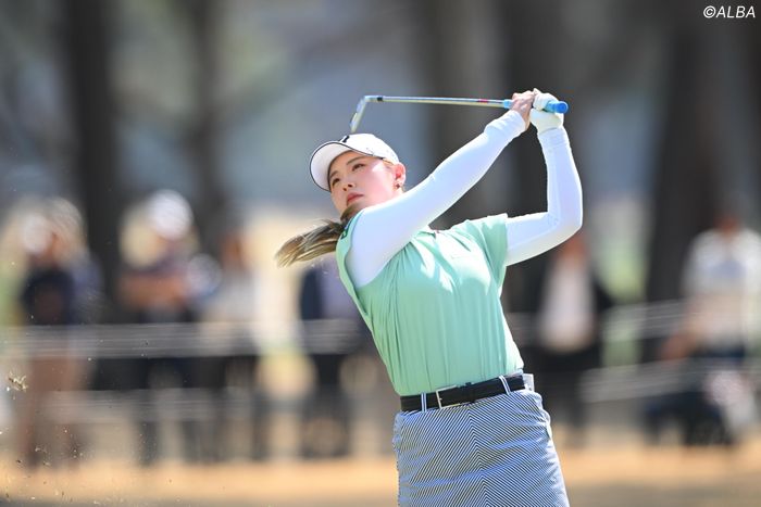 ドライバーでのティショットはフェアウェイ左へ。2打目はピン手前1目0トル弱にピタリ。これをしっかりと沈めて、2季ぶり4勝目に向けてバーディ発進を切った。首位と9打差の2位タイに昨年覇者の鈴木愛と大里桃子。10打差4位タイに菅楓華と木村彩子が続いている。渋野日向子、小祝さくら、勝みなみらはトータル2アンダー・6位タイ。吉田優利の妹・鈴はトータル3オーバー・39位タイで前半をプレーしている。2戦連続優勝がかかる岩井千怜はトータル1アンダー・13位タイ。姉の明愛はトータルイーブンパー・18位タイにつけている。