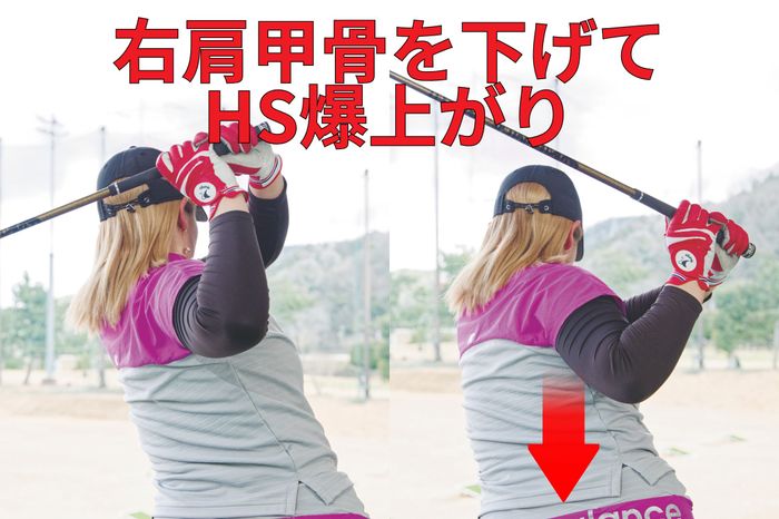 【連続写真】右肩甲骨を真下に下げてHS爆上がり! 石井咲楓の超豪快ドライバースイング