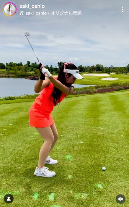 1つは暑いタイでラウンドする際の紫外線対策だった。この日の押尾は鮮やかなオレンジ色のノースリーブ・ミニワンピを着用。腕と足は素肌のままのようだが、よく見ると上下ともにUVカットインナーを着ていることが分かる。今回が初めてだったそうだが、「日焼け止め塗らなくていいの ストレスフリーすぎてた……」「日焼け止め、手滑るし塗りムラあるし ボディーソープじゃ落ちきらないし」と、これまでの面倒な仕事から一気に解放されたことを嬉しそうに報告。「インナー革命かも! 嬉しい」と大絶賛していた。そしてもう1つは「素晴らしいロングパット対策」だ。投稿ではパー3のティショットを動画で公開。打った瞬間に「いいんじゃない?」の声。さらに「ホールインワン!」「パターしなくてもいいところまで行って!」「入れっ!」と興奮気味の声が相次いだ。つまりピンそばにナイスショットをすること、「ロングパットしない」ことこそが対策とのことだ。そのためには「気合で寄せる」ことが肝要となる。このアドバイスを聞いたファンは「私も気合いで寄せられるようになりたいです」と願望をコメントしていた。