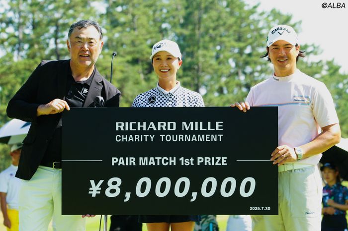 <リシャール・ミル チャリティトーナメント 事前情報◇30日◇能登カントリークラブ(石川県)◇7142ヤード・パー72>国内男子ツアーは、あす31日(木)に令和6年能登半島地震・豪雨の被災地支援やジュニア育成なども行う大会が開幕。本戦に先立って、2日間にわたる「リシャール・ミルチャリティペアマッチ2025」が行われた。初日首位に立った石川遼・金澤志奈ペアがベストボール形式のこの日も「61」の好スコアをマーク。2位と4打差のトータル26アンダーで優勝を飾った。