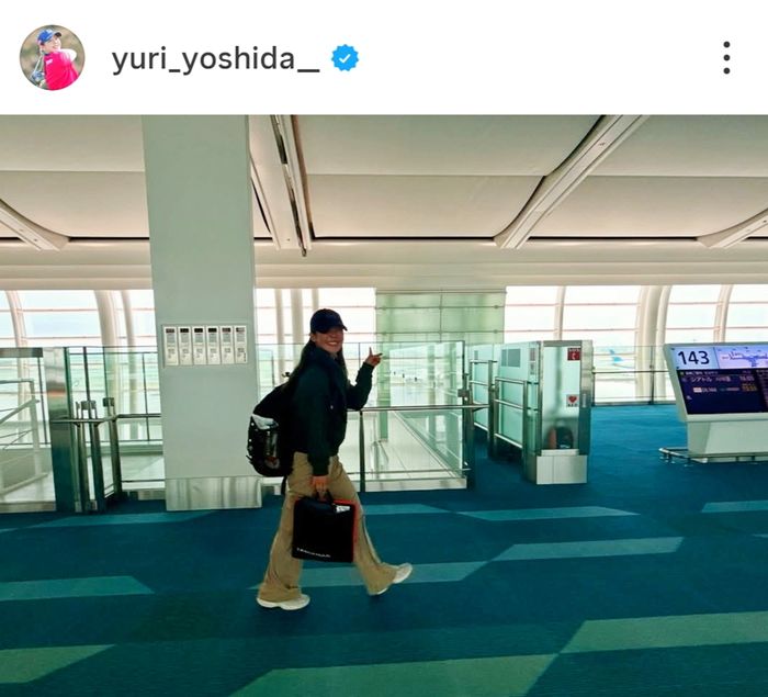 吉田優利が自身のインスタグラムを更新。空港のラウンジでビュッフェを楽しみ、搭乗機に向かって颯爽と歩く姿を投稿した。