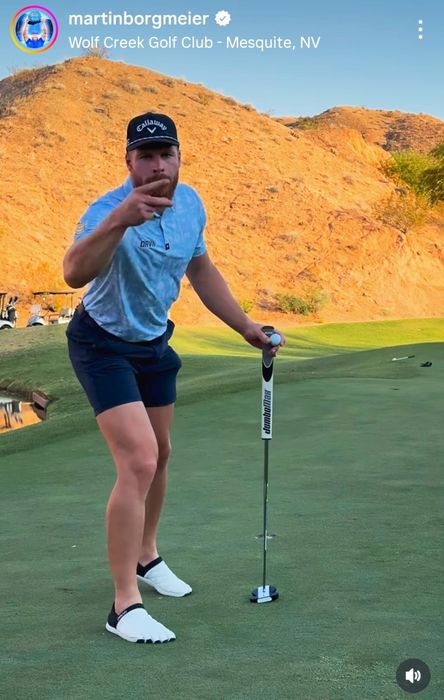 ティーイングエリアからホールを見渡すと、芝生の緑の向こうには荒涼とした岩山が幾重にも連なっている。樹木の少ない独特の景観だ。そのフェアウェイに向かって豪快なティショット。軽いドローがかかったボールは池の方向へと向かっていく。ボルグマイヤーも「カモン!」と声を上げながら行方を見つめていた。ティショットの飛距離は439ヤードも出たが、ボールは池に落ちてしまった。池の縁にドロップをすると、第3打のアイアンショットも低い弾道でやや左方向へ。そこからロブショットで狙ったアプローチは二段グリーンの傾斜を利用してピンそばに寄せていった。ここで中尺のパターを取り出すと、左手はグリップエンド、右手はヘッド近くのシャフトを握るという個性的なフォームを披露。そして真ん中からパットを沈めて、池に落としながらも見事にパーをセーブしてみせた。ところがコメント欄に寄せられたのは飛距離への驚き、ナイスパーセーブへの称賛ではなく、ボルグマイヤーのショートパンツと5本指に分かれたように見える柔らかそうなシューズに集中していた。「そのショーパンはどこで買えるの?」「パンツはどんどん短くなっていくね」「ショートパンツは許せるけど、そのシューズは何なの?」「そのシューズのおかげで30ヤードは余計に飛んだんじゃない?」など、興味は尽きないようだった。