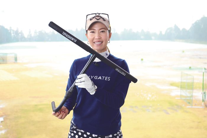 ◇ ◇ ◇スイングにおいて、大きな背中はとても重要なもの。スイングのエネルギーは、上半身と下半身の捻転差によって生まれます。エネルギーはこの捻転差に比例し、大きくなればなるほど飛距離は伸び、ボールにキレが生まれます。これを逆の視点から見てみましょう。背中の丸まった猫背のアドレスでは、なかなか大きなトップを作れません。捻転差が生まれないからです。この状態でトップを高くしようとすれば、オーバースイングになるしかなく、これが手上げ、手打ちの原因にもなっています。こういうアマチュアは少なくありません。姿勢の悪さや力みが、上達を阻害しているのです。背中を大きく使えることこそ、スイングのエネルギーを生み出す要因となるのです。アマチュアは手の動く量が大きく、プロは手の動く量が小さい。しかし、プロは上体が大きく動いているから、大きな捻転差が作れるとも言えます。背中を大きく使って、より大きな捻転差を作るために、宮崎の合宿では用意してもらった竹で練習させたものです。具体的には両腕を大きく開いて竹を横に持って振らせたり、やはり両手の間隔を明けて竹をタテに持って振らせたりもしました。腕を伸ばすことで、背中が大きく使えるからです。しかし、竹を持ち運ぶのは現実的ではありません。そこでホームセンターで見つけたのが、塩化ビニール製のパイプ。これをつなぎ合わせて作ったのが“辻村棒”と呼ばれる練習器具でした。練習器具のDIYです。この練習器具は背中を大きく使って最大捻転差を生み出す効果があります。T字型の器具を両ワキに挟んでグリップして、素振りをします。背中の大きな筋肉を使うことを覚え、同時に下半身の粘りを感じることで、より大きな捻転差が作り出せます。さらに、腕の長さが一定のため、手上げや手打ちの防止にもなります。(上田)桃子は辻村棒でラウンド前などに、トップを作って左足で踏み込む動作を繰り返してから、スタートしていました。その素振りで背中にハリを感じられれば、捻転差のあるトップが作れます。その状態から、上体を右に向けて下半身から切り返せると、最大捻転差を作り出せるのです。コーチングをしていてつくづく感じるのは、「手で覚えたものはすぐに忘れる」ということです。小手先という言葉がありますが、その場しのぎの技術ではゴルフの上達は期待できません。では、技術はどこで身に付ければいいかといえば、体の中心である幹であり、体そのものです。手は“上体の回転に付いて動くもの”をマスターできれば、手上げ、手打ちの防止につながります。辻村棒がない場合は、1本のクラブを両腕を大きく開いて持ち、上体を大きく回して素振りをしましょう。スタート前にこれで体を動かすだけでも、その日のスコアは変わるはずですよ。まして、1日3分、練習に加えれば、あなたのスイングは激変するはずです。
