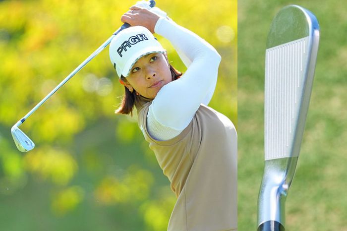◇ ◇ ◇4番〜PWには軟鉄鍛造のアスリートモデル『PRGR 01 IRON』を採用。女子プロで4番アイアンまで組んでいるのは珍しい。そこには彼女ならではの理由がある。「私は藤田さいきプロと同じように、右サイドでボールをさばいて打つタイプです。フェースをターンさせて上から打ち込むので、ソール幅が狭いモデルの方が打ちやすいんです。キャビティアイアンだと反発力が強すぎて飛びすぎてしまう。ぶっ飛んじゃう感じになるんです」一方、3番アイアンはユーティリティの代わりにキャビティモデルを投入。『PRGR 03 IRON』ヘッドに『OTi 85 S』シャフトを組み合わせている。「ユーティリティは苦手で打てないんです。どこに飛ぶかわからないし、リーディングエッジが出ているのも好きじゃなくて……。アイアンの方が得意なんです」と森田。軟鉄鍛造ボディならではの柔らかい打感と、狙い通りにラインを出せる性能も魅力だ。『OTi 85 S』は大きなしなりを生かしつつヘッド挙動を安定させるカーボンシャフト。ロフトが立った3番アイアンでも、楽に球を上げられる仕様になっている。アスリートモデルを駆使し、豪快なセカンドショットを放つ森田理香子。さらなる上位進出に期待したい。◇ ◇ ◇女子プロが使用するアイアンシャフトを調査。関連記事【アイアンシャフト選びは7番のキャリーと高さ! キャリー140Y以下なら軽量シャフト、140Y以上で高さが欲しいなら重量カーボン】で詳