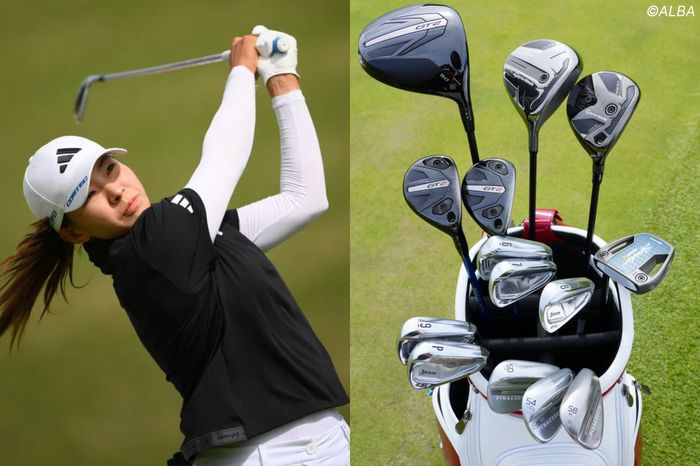 ドライバーは、開幕当初から変わらずタイトリスト『GT2』(9度)を使用。シャフトは『24 ベンタスブルー』から『スピーダーNX ブラック 50SR』に変更していた。ヘッドについては「ミスヒットに対する許容性が高く、最大限のスピードパフォーマンスを引き出してくれる」と以前、本人が語っている。『スピーダーNX ブラック』は手元がやや軟らかく、先中調子でつかまりの良いモデル。「歴代『NXシリーズ』の中でも最も先調子に近く、しなり量が大きいため飛距離性能の高さが特徴です」(クラブフィッターの吉川仁氏)。フェアウェイウッドは3Wに『Qi35』、5Wに『Qi35ツアー』を採用。クラブ長が長くロフトの立った3Wはスタンダードモデルを使用し、ロフトが寝てクラブ長が短い5Wでは操作性の高いツアーモデルを組み合わせている。その下には、5Iを抜いて4U・5Uのタイトリスト『GT2』(21度・24度)を投入。高い直進性と寛容性を発揮し、長い距離でも安定した弾道をもたらすチョイスだ。アイアンは4月に投入したセットから変更なし。6Iにはやさしめの軟鉄鍛造モデル『スリクソン ZXi5』を、7I〜PWには操作性の高い『スリクソン ZXi7』を採用している。渋野は4月の時点で「ラフでも抜けやすいように、少しシャープな形状の『ZXi7』に替えました」とコメントしている。アイアンシャフトは『MCI 80R』を使用。「カーボン特有のしなりがボールを拾いやすくするうえ、方向性が安定しているシャフト。フレックスRを選択することで、よりしなりを得られやすいでしょう」(吉川氏)。ウェッジは50度・54度で『ボーケイ SM10』、58度では『ボーケイ ウェッジワークス』を使用。58度はKグラインド(幅広ソール)で、ソールが滑るように動くためダフりにくく、安定したアプローチが可能だ。注目すべきは、ウェッジにカーボンシャフト『MCI 90R』を採用している点。女子ツアーでは尾関彩美悠らもカーボンシャフトを使用しており、しなりを活かして距離感を合わせやすく、ミスヒットにも強いのが特徴だ。パターは、岩井明愛らも使用するスパイダーシリーズの『スパイダー ツアーV V7』を投入。完全なフェースバランスではなく、わずかに重心角を持たせているため、小さいフェースターンでストロークできるのがメリットとなる。久しぶりの国内ツアー参戦となる渋野。新たなシャフトセッティングで、どんなプレーを見せてくれるのか注目が集まる。【渋野日向子のクラブセッティング】1W:タイトリスト GT2(9度/スピーダーNX ブラック 50SR)3W:テーラーメイド Qi35(15度/スピーダーNX ブラック 50SR)5W:テーラーメイド Qi35ツアー(18度/スピーダーNX ブラック 50SR)4・5U:タイトリスト GT2(21・24度/ベンタスブルーHB 7S)6I:スリクソン ZXi5(MCI 80R)7I〜PW:スリクソン ZXi7(MCI 80R)50・54度:タイトリスト ボーケイSM10(MCI 90R)58度:タイトリスト ボーケイ ウェッジワークス(MCI 90R)PT:テーラーメイド スパイダー ツアーV V7BALL:スリクソン Z-STAR XV◇ ◇ ◇人気アイアンを調査。関連記事『79mm前後に人気モデルが集中! 最新アイアンの性格は“ブレード長”で8割決まる【アイアン41モデル比較】』を読めば、その秘密がわかる。