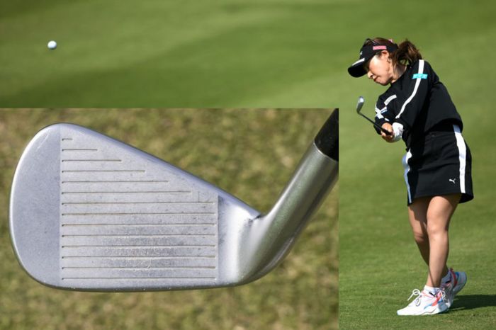 【写真】愛用アイアンの顔はボテッとしておらずシャープ! バックフェースは傷だらけ