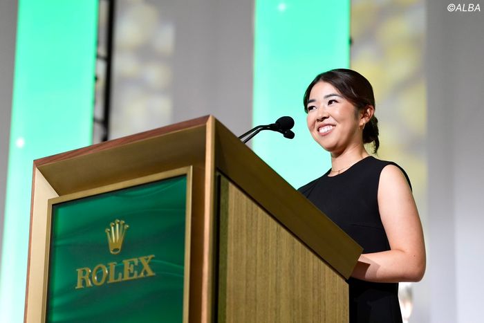17日、米フロリダ州にあるホテル、ザ・リッツ・カールトンで、米国女子ツアーの『ロレックスLPGAアワード』が開催された。ルーキー・オブ・ザ・イヤー(新人賞)に輝いた山下美夢有も出席し、壇上で表彰。そして英語でのスピーチを堂々と披露した。