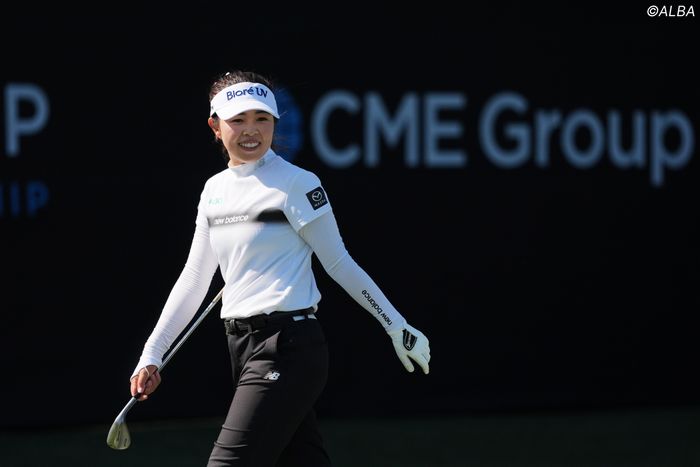 <CMEグループ・ツアー選手権 事前情報◇18日◇ティブロンGC(フロリダ州)◇6734ヤード・パー72>人生初の英語スピーチからわずか12時間後。山下美夢有の姿はコースにあった。全体トップの朝7時から18ホールのプロアマをラウンド。カート使用が許されながらもフェアウェイは自らの足で歩き、いつもと変わらない表情、ルーティンでコースチェックをこなした。