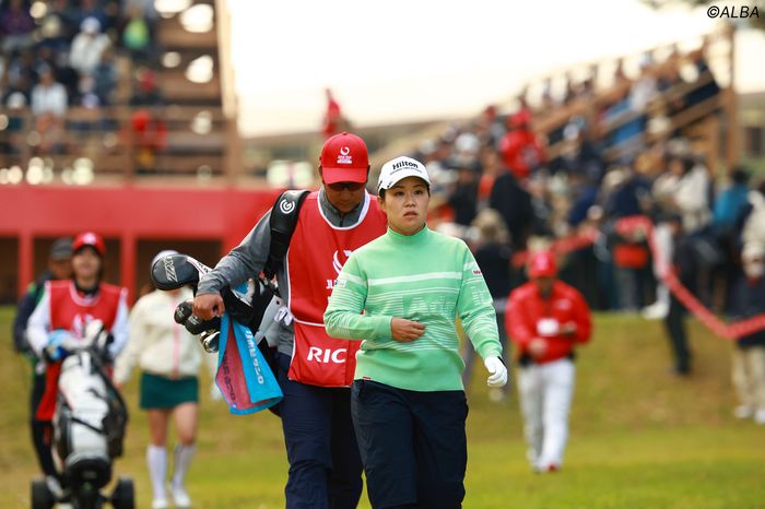 <JLPGAツアーチャンピオンシップリコーカップ 初日◇27日◇宮崎カントリークラブ(宮崎県)◇6543ヤード・パー72>国内女子ツアーをけん引する黄金世代の始まりの2人が、初めて2サムで回った。同じ組になるのも国内ツアーでは2020年「アース・モンダミンカップ」最終日以来、実に5年ぶり。出場40人のエリートフィールドで、初日から2人1組の2サムとなる最終戦ゆえに実現した競演だった。