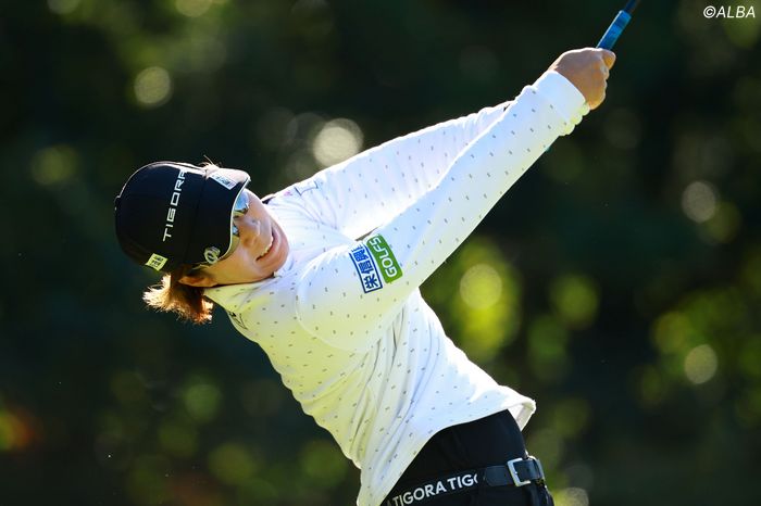 <JLPGAツアーチャンピオンシップリコーカップ 2日目◇28日◇宮崎カントリークラブ(宮崎県)◇6543ヤード・パー72>ド派手なイーグル発進が首位獲りの号砲だった。370ヤードの1番パー4。フェアウェイ左からの穴井詩の2打目は、106ヤード先のカップの中に消えた。
