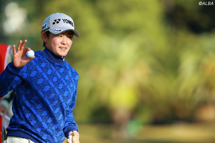 今季の米女子ツアー優勝の資格で3年連続3回目の出場となる明愛。独特の高麗グリーンには「苦手ですね」と苦笑するが、初日は大会自己ベストとなる「69」をマークした。2日目は1番でグリーン左奥に外し、アプローチが2.5メートルほどオーバーしてボギー発進。それでも6番では7〜8メートルを強めのタッチで沈めてバーディを奪うなど、「上がってみたらイーブンだったので、いい方かなと思います」と耐えて首位争いにつないだ。今季国内初優勝に向けて好位置で大会を折り返した。3日目は妹の千怜と同組で「うれしい」と喜ぶ。国内で姉妹同組になるのは、アマチュア時代を含めて今年の「TOTOクラシック」以来、20度目。2人1組のツーサムは、昨年の今大会第3ラウンド以来2度目だ。6位から出て1つ伸ばして4位タイで先にホールアウトした千怜は、明愛と同組になると知ると「うれしいですね」と笑顔を見せた。「40人出ていて、姉妹2人が2サムで回れる確率はそんなに高くないと思うので。ファンの方も見やすいと思うし、そういう面でもうれしさは増します。楽しい雰囲気でやれそうですね」と相乗効果も期待する。今季国内開幕戦を制し、4年連続4度目の出場となる千怜も明愛と同様、このコースは得意とはいいがたい。過去3回で60台を出したことはなく、初日の「69」で自己ベスト更新。この日もボギーが先行する展開だったが、11番から4連続バーディを決めるなど連日のアンダーパーでまとめた。「やっぱり(高麗)グリーンが独特なので…。ラインは読めるんですけど。芝目が思った以上に来ているところが多いのでグリーン上で苦戦します」。米国でも経験していないという芝のクセ。明愛同様、今コースでのベストスコアを更新しているのは、米国で培ったタフさや粘り強さといった部分が力になっているのかもしれない。昨年は明愛が8位、千怜が13位で同組になったが、今回は上位争いの位置。3日目以降はウエア契約を結ぶ「マスターバニーエディション(MBE)」と姉妹でコラボしたウェアを着用予定。明愛の“A”と千怜の“C”、そしてふたりの誕生日である7月5日の“75”を組み合わせたオリジナルロゴがあしらわれるという。どんなロゴなのかはお楽しみだが、同じようなコーデで登場する見込み。「それも双子ならではの楽しみですよね。3日目も楽しみながら」(明愛)、「上りも下りもパットは攻めます」(千怜)と意気込む二人。米国で磨いた強さを携え、岩井姉妹が宮崎を熱く盛り上げる。(文・小高拓)