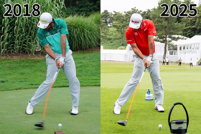 【連続写真】比べて見ると頭の残し具合がかなり違う! 松山英樹の2025年と2018年のスイング比較