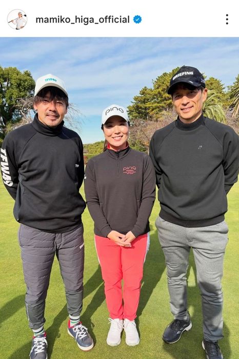 比嘉真美子が自身のインスタグラムを更新。サッカー選手として海外でも大活躍をしてきた宮本恒靖、松井大輔とラウンドしたことを投稿した。