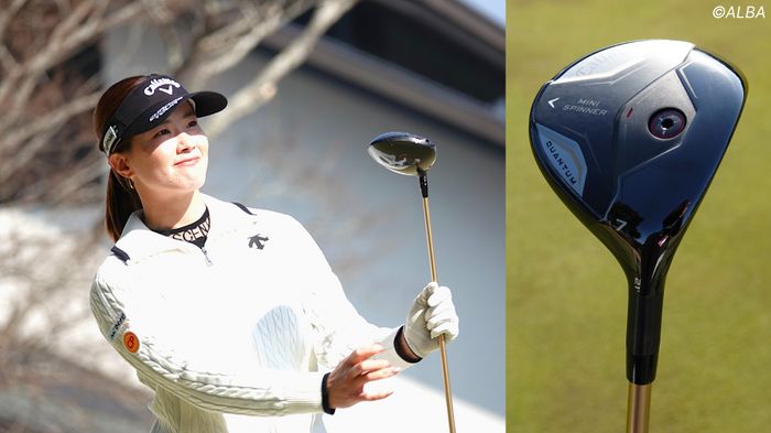 キャロウェイと契約する青木は、ウッド類を最新の『QUANTUM』シリーズにスイッチ。すでに同シリーズは発売されているが、7番ウッドは未発表とみられるモデルをバッグインしていた。ソールには『QUANTUM MINI SPINNER』と刻印されている。ネックは接着タイプでディープフェース。通常モデルに比べてややヒール側がすっきり見え、コントロール性能を重視した設計に見える。実際に青木も「操作性がある」と話しており、飛ばすというより、高い球でグリーンを止める武器としてバッグに入れた意図がある。政田夢乃も同クラブをテスト中とのことで、開幕戦では未発表モデルを投入する選手も多いかもしれない。昨年ツアーを戦い抜くなかで感じたのは「低い球ではグリーンが止まらない」こと。特にメジャーセッティングではそれを強く実感したため、ショートウッドを入れるほか、昨年投入していた5番アイアンを抜いてユーティリティに替えるなど、工夫を凝らす。オフには体重を5キロ増量し、飛距離もアップ。それに伴い番手構成の選択肢も増え、ロフトの多いウッドを選べるようになった。新たなセッティングで、プロ2年目のシーズンをスタートさせる。【青木香奈子のクラブセッティング】(2026年2月時点)1W:QUANTUM ???(9度/SPEEDER NX GOLD 5-S)3W:QUANTUM MAX(16.5度/SPEEDER NX GOLD 6-S)7W:QUANTUM MINI SPINNER(21度/SPEEDER NX GOLD 6-S)4、5U:QUANTUM MAX FAST(22度/ SPEEDER NX HB 75-S)6I:APEX(NSプロ 850GH S)5〜PW:X FORGED MAX(NSプロ 850GH S)46度:OPUS SP (NSプロ 105 S)52,58度:X FORGED(NSプロ 105 S)PT:オデッセイ ELEVENBALL:CHROME TOUR X