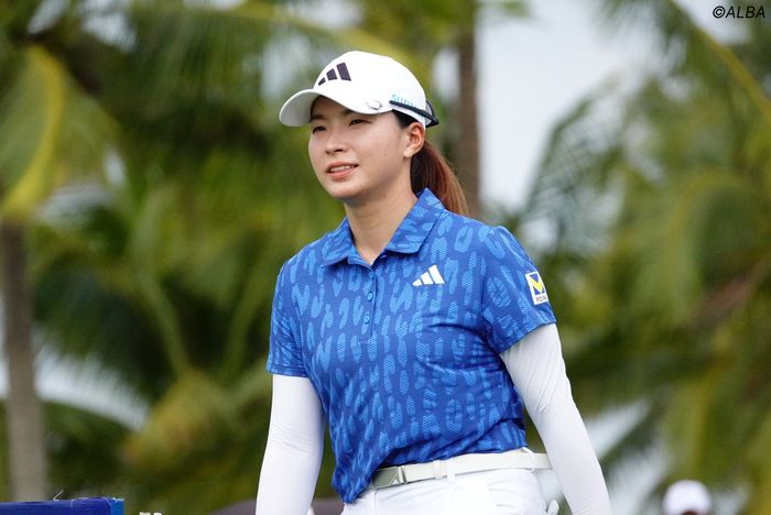 風が強まり始めたなか午前11時52分にティオフ。3番パー5でラフからのチップインバーディが先行した。ただ、そこから耐える場面が続き、9番、さらに花道から寄せきれなかった12番でボギーを喫した。それでも15番では池越えギリギリに落として、ピンそば1.5メートルにピタリ。イーブンパーに戻して終盤へと入ったが、17番、18番ではディボッドにつかまるアンラッキーに見舞われた。18番ではその3打目がグリーン手前のラフにショート。アプローチは3メートルオーバーし、1.5メートルの返しもカップに沈まなかった。「すごく不運な感じはありましたけど、そこから寄せようと思えば寄せられたし、それ以降のパッティングがもったいなかった。それ以前の問題かなと思います」この日のパーオン率は50%。前半は特にパーを拾うのが精一杯だったが、後半にかけてチャンスの場面が増えていった。アンジュレーションの強いグリーンに対し、ピン位置と同じ面に乗せ、エッジ近くに切られたピンに対してもかなり突っ込んで攻めているように感じられた。オフに取り組んだスイングには、ロープの外からでも分かる変化があった。アドレスは「前傾の角度がちょっと浅く」なり、テークバックのテンポはややゆっくりに。そしてフィニッシュの位置が高くなった。「意識するところは全部。再現性の高いショットが打てるようになりたいと思ったので、いろいろ試しています」というのが、いま取り組んでいるテーマだ。「いままでのクセが残っていたりするので、やりきれない部分もあったりするけれど、絶対にいい方向につながっていくと思う。スコアはボロボロですけど(笑)。とりあえず、辛抱してやるしかない。ショットでチャンスにつけてバーディを獲れるように頑張りたい」。悔しい今季のスタートダッシュにも、昨年からの変化を感じさせた一日。2オーバー・63位タイのカットライン上から浮上を図る。(文・笠井あかり)