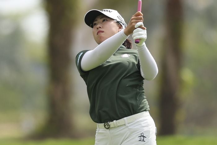 3番ウッドでのティショットは左ラフへ。2打目でグリーンに乗せると、段越えのバーディパットをきっちりと寄せて、パーで滑り出した。残り17ホールで4打差逆転を目指す。米ツアーデビュー戦の原英莉花はトータル3アンダー・16位タイ。古江彩佳はトータル2アンダー・21位タイ、渋野日向子はトータル1アンダー・23位タイにつけている。笹生優花はトータル2オーバー・36位タイ。西村優菜、デビュー戦の櫻井心那はトータル5オーバー・47位タイで前半をプレーしている。トータル12アンダー・単独首位にイ・ミヒャン(韓国)。3打差2位タイにチェ・ヘジン(韓国)とリウ・ユ(中国)が続いている。今大会の賞金総額は260万ドル(約4億800万円)。優勝者には39万ドル(約6120万円)が贈られる。