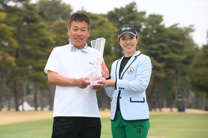 <Vポイント×SMBCレディス 最終日◇22日◇紫カントリークラブ すみれコース(千葉県)◇6731ヤード・パー72>2021年6月の「ヨネックスレディス」以来となる5年ぶりの勝利も、キャディを務める父・清也さんとつかみ取った。優勝スピーチでは、「いつもキャディバッグを担いでくれる父に感謝の気持ちでいっぱいです」と感謝。だがその父は、試合が終わると照れくさかったのか表彰式には出ず、手押しカートを押して、そそくさとクラブハウスへ戻ってきた。ベンチで一息ついているところで記者に囲まれると「良かった」と一言。そして「若い子が活躍しているけど、この年齢でもできる」と38歳になった娘を労う。