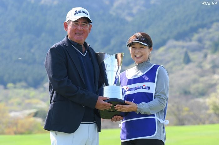 1打リードで迎えた18番パー4。グリーン左サイドの狭いエリアにピンが切られていた。残り140ヤード。「右に逃げると3パットもある。今週自信を持って打てていた」と9番アイアンを握ると、驚異の集中力を発揮して狭いエリアのピン左1.5メートルに乗せた。「最後は緩みました」と笑って話したが、カップの右隅からボールを沈めて優勝が決まった。「優勝すると思っていなかったので、正直びっくりです」と無欲の勝利となった。「いろいろあったどころじゃないですよね。本当に長かった」。20年ぶりVの余韻をかみしめた。レギュラーツアー時代は05年の「アイフルカップ」でツアー初優勝を遂げ、翌年に2勝目と順風満帆な選手生活を送っているかに思えた。しかし、08年頃からドライバーのイップスに襲われる。「手が震えてティアップできないほど。本当に苦労しました」と辛い時代を思い出す。07年は賞金シード権を確保したが、08年は同81位。賞金シードは手放したが、国内メジャー優勝による5年シードを保持していた。しかし、イップスは改善されず、09年は20試合に出場して予選通過はわずか3試合。10年にいたっては20試合すべて予選落ちで、“獲得賞金ゼロ”というどん底の1年も経験した。症状が出始めたころ、永久シードの倉本昌弘が声をかけてくれた。「倉本さんも昔ドライバーで悩んだ時期があって、一緒にラウンドしてくれたり、いろいろアドバイスをしてくれました。先週も初日が終わったあと食事に連れて行ってくれて、本当に感謝しています」。グリーンサイドにいた倉本の姿を見て涙腺が緩んだが、「泣くなよ」と声をかけられ、「もうちょっとやさしい言葉だったら泣いていました」とうれし泣きは温存した。長期シードが切れた12年以降は下部ツアーを主戦場としていたが、倉本の支えもあり50歳が近づくと「シニアでもう一度」と決意を固める。上田桃子らを指導してきた大学の後輩・辻村明志コーチとスイングを見直した。それでもシニア1年目は思うような結果を残せなかった。「これまで何度もやめようと思っていましたが、おととしは本当に辞めようと考えました。これだけ悩んでいても、前に進まないし…」。ドライバーへの不安はピーク時が100だとしたら、今でも「半分は不安」と50は残っていると話したが、一昨年は80ほどまでの重めの症状が出ていた。レギュラーツアー2勝以上の資格でフル参戦した昨年は、中盤戦でトップ10入りを果たすなど手応えをつかんだ。オフには一念発起し、肉体面に加えてメンタル面の強化にも着手。心技体すべてを見直して臨んだ今年3月の最終予選会は21位だった。それでも「今年はやれる」という手応えを胸に先週の開幕戦へ。そして迎えた2戦目で、シニアツアー初優勝をつかんだ。橋の優勝が決まると、多くのプロ仲間が祝福に駆けつけた。倉本をはじめ、支えてくれた仲間や関係者への感謝を口にしつつ、「葉月に優勝を見せられたのが一番よかった」とうれしそうに話した。学生時代から親交のあった女子プロゴルファー・牛渡葉月と2005年に結婚。レギュラーツアー時代を含めて10年以上、キャディを務めるなどシニア界のおしどり夫婦として、ロープ内外でサポートをしている。「優勝なんか見せてあげられないと思っていたんですけど…」。この日は、夫のプレーを見守っていた葉月夫人が前半の途中で声をかけた。「たっちゃん、きょうはたぶん優勝できるよ。あと2つ、3つ伸ばせば勝てる」。背中を押すようなひと言が、勝負どころでの力になった。「そんなにうまくいくわけないじゃん」と返したが、11番は6メートル、15番は5メートルのクラッチパットを沈めて単独首位に立った。「終盤まで優勝を意識してドキドキできるのはうれしいね、って言いながらやっていました」。集中力は最後まで続き、葉月夫人の思惑通りゲームが進んだ。「僕のクセも全部知っている。何気なく(ゴルフ以外の)話を振ってくるんです。なんでこんな話をするんだろうと思っていたけど、意識をそらしてくれていたんだと思います」。高橋はそう振り返る。誰よりも近くで支えてきたからこそのサポートだった。表彰式では、二人で大事そうに優勝カップを掲げる姿が印象的だった。「これで初めて(日本)シニアオープンに出られます。それが楽しみです」。おしどり夫婦は新たな目標へと歩みを進める。(文・小高拓)