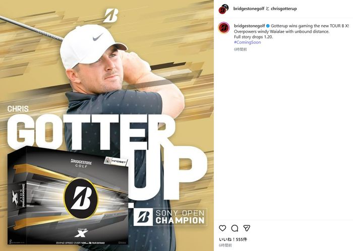 <ソニー・オープン・イン・ハワイ 最終日◇18日◇ワイアラエCC(ハワイ州)◇7044ヤード・パー70> 【画像】米国では、現行モデルの『TOUR B X』の箱はこんなデザイン PGAツアーの今年開幕戦の最終日。優勝はトータル16アンダーまで伸ばしたクリストファー・ゴッタラップ(米国)で、2打差を覆してツアー3勝目をつかんだ。ボール(TOUR B X Mindset)とアイアン(220MB)の使用契約を結ぶ米国ブリヂストンがSNSでこう祝福する...
