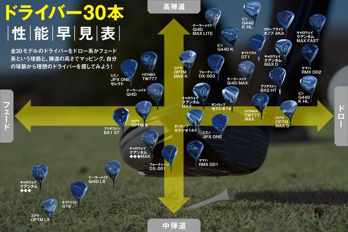 ピン、テーラー、キャロウェイ、ゼクシオ、ミズノ……最新ドライバー30本の性能早見表を作ってみた!