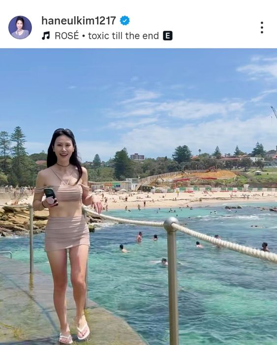 キム・ハヌルが水着姿で豪州でも大人気のビーチを満喫 木に頭をぶつけてしまうお茶目な姿も