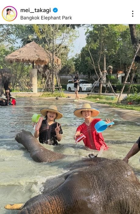 タイで合宿中の高木萌衣が自身のインスタグラムを更新。オフの日に宮澤美咲と「バンコク・エレファント・パーク」に出かけた様子を楽しい写真と動画で投稿した。 【動画】ゾウに水をかけられた瞬間! 「ご飯を作ってあげたり一緒に散歩したり 最後には一緒に水浴びまでできて最高だったー」「赤ちゃんゾウ可愛すぎる」と一日を振り返った高木。投稿では、手渡しでおやつを食べさせてあげたものの、全部食べてもまだ欲しがるゾウ...