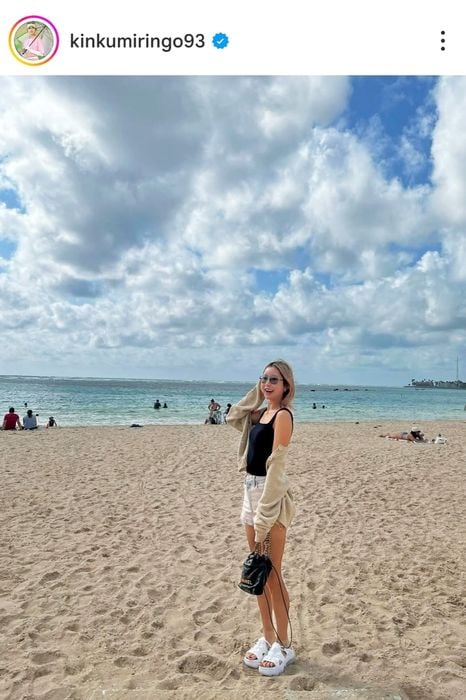 ハワイに滞在中の金田久美子がタンクトップ&ショートパンツ姿のオフショットを公開 美味しい朝食はビーチで?