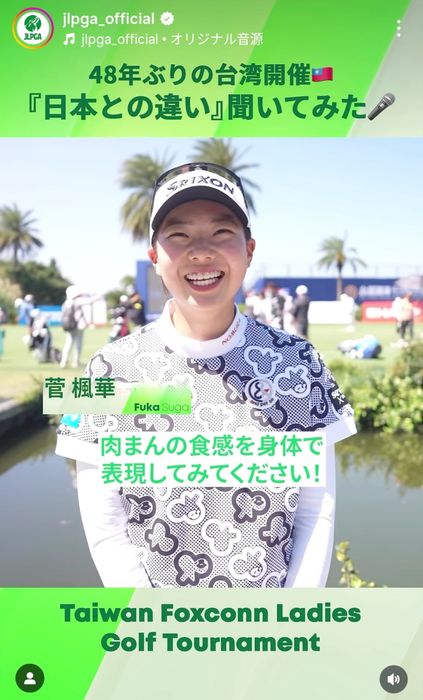 日本女子プロゴルフ協会が公式インスタグラムを更新。48年ぶりに台湾で開催されるツアー競技「台湾ホンハイレディース」に参戦するプロたちが、コースの印象や天候、グルメについて質問に答える動画を投稿した。 【動画】本人も大笑い! 菅楓華が身体で表す肉まんの食感 気候について語ったのは今季初戦で通算5勝目を挙げた佐久間朱莉だ。「南に降りてきたのに寒いです」と驚いた様子。天本ハルカも「昨日までは、ここどこかな...
