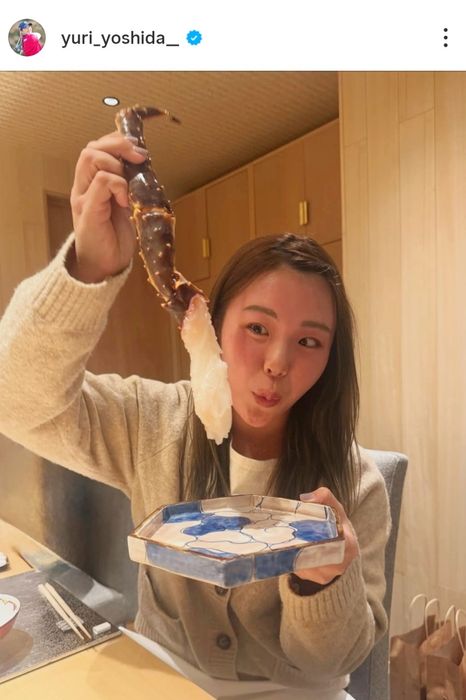 吉田優利は食欲の冬? 大きなカニの足から餃子定食、スイーツまで、オフに楽しんだ食事の大公開に1.4万件以上の「いいね!」殺到