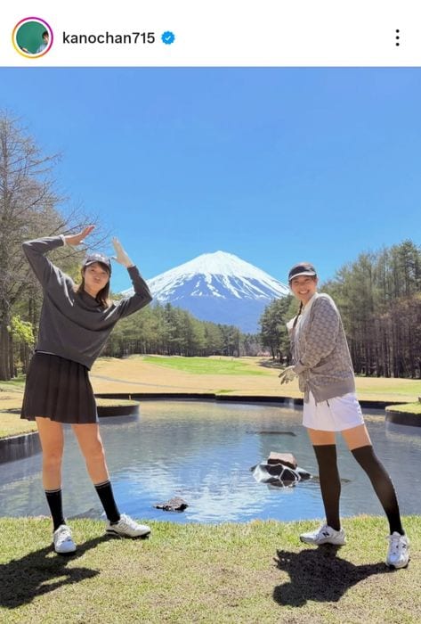 狩野舞子と迫田さおりの「最高に気持ちいいお花見ゴルフ」をSNSで公開! ファンも思わず「何もかもが美しい」