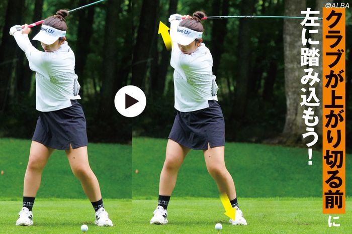 山下美夢有はトップで左足体重!? クラブが上がり切る前に左に踏み込むと飛ぶ!