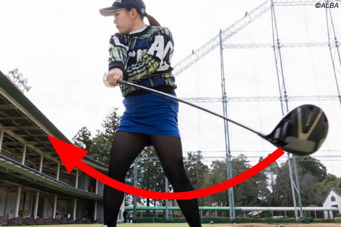 なんじゃこれ!? 156pで382yの柳井紗奈『打ってから後方へスイング』でヘッド激走り