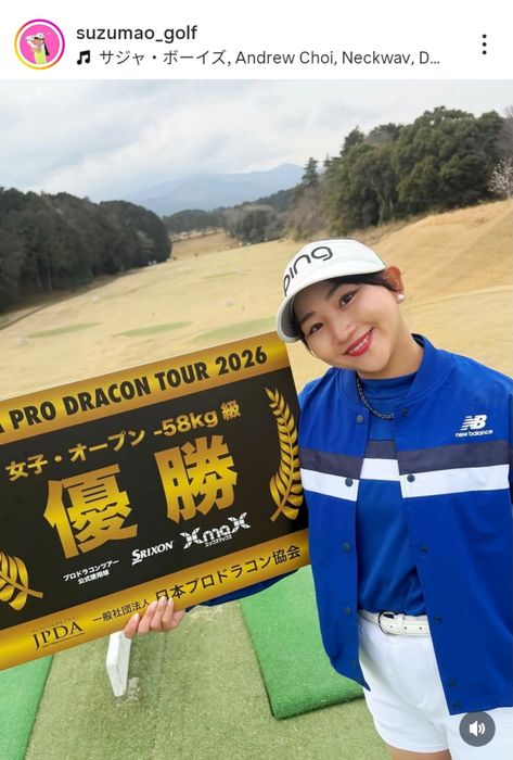 ドラコンプロとして数々のタイトルを獲得してきた鈴木真緒が自身のインスタグラムを更新。静岡県で開催されたドラコン地方予選の2日目に「?58kg級で優勝することができました」と嬉しい報告をした。 【連続写真】身長154センチで最長328ヤード! 鈴木真緒の豪快スイング 前日には?65kg級でも優勝しており、これで2階級制覇の快挙を達成だ。しかも優勝しただけにはとどまらず「スイングが崩れた時の対処法を発見した気がするぞ...