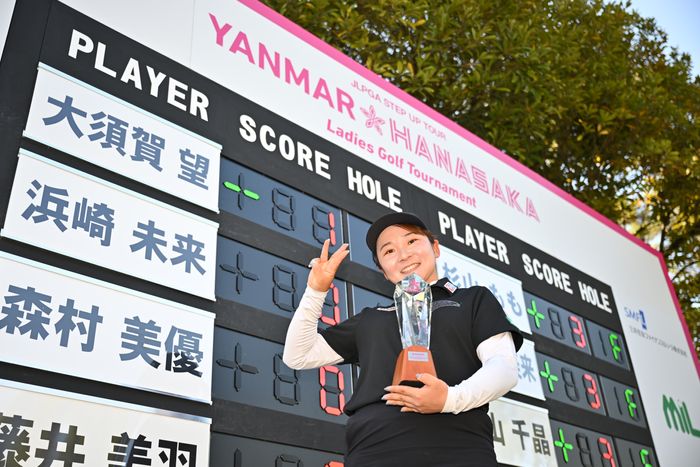 <YANMAR HANASAKA Ladies 最終日◇11日◇琵琶湖カントリー倶楽部 栗東・琵琶湖コース(滋賀県)◇6440ヤード・パー71>国内女子下部ステップ・アップ・ツアー開幕戦の最終ラウンドが終了した。第2日目が悪天候で中止となり、36ホール短縮で行われた。 【写真】「勝手に飛ぶし上がる」大須賀はロイコレ3本体制 単独トップで出た146センチの小兵・大須賀望が2バーディ・3ボギーの「72」をマーク。トータル1アンダーで逃げ切り、...