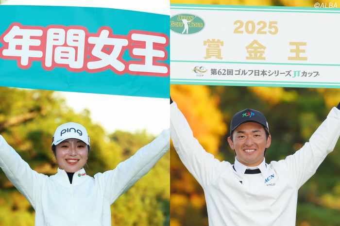 今季も数多くの話題が生まれたゴルフ界。その中から、編集部が各ツアーの10大ニュースをピックアップしてシーズンを振り返る。今回は『国内男女・前編』。 【写真】エレガントなドレスに身を包む佐久間朱莉 ■佐久間朱莉が年間女王、金子駆大は賞金王戴冠男女ツアーともに新たな王者が誕生した。シーズン4勝を挙げた佐久間朱莉が年間女王に輝き、2勝をマークした金子駆大が賞金王を獲得した。佐久間は4月の「KKT杯バンテリンレ...