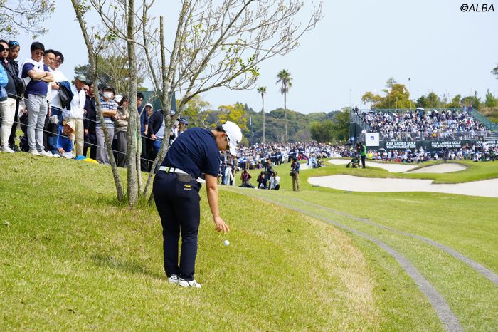 <アクサレディス 最終日◇29日◇UMKカントリークラブ(宮崎県)◇6539ヤード・パー72>優勝争いが繰り広げられるなか、最終18番で申ジエ(韓国)の2打目は左サイドのラフにつかまった。ボールはつま先下がりの急斜面に止まり、そのすぐ右にはカート道がある。この状況で、ジエは競技を一時中断して競技委員を呼んだ。 【写真】競技委員と長時間話し込む申ジエ 「自分で判断して処置をしようと思ったけれど、最後のホールで勝...